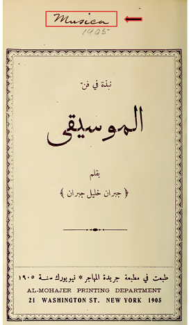 It was Ameen Goryeb himself, through the «al-Mohajer» printing department, who published Gibran’s first book, Nubḏah fī Fann al-Mūsīqá (A Short Treatise on the Art of Music), also known simply as al-Mūsīqá (The Music) Published in 1905 in New York, this essay of about 20 pages marks the author’s debut into the world of letters.