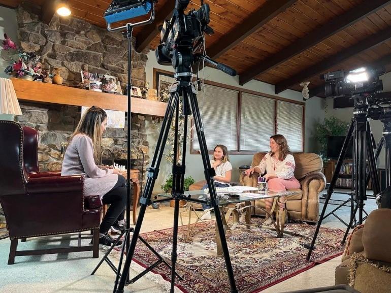 Ani Kasparian interviewing Ukrainian refugees.