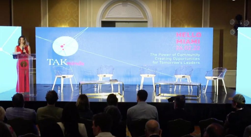 Ani Kasparian hosting the Takreem Awards' TAK Minds Forum 2022 in Miami, Florida.