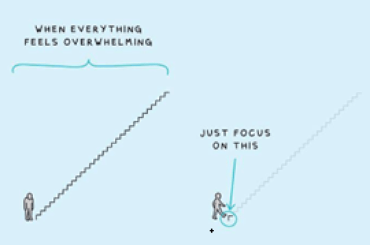 Focus on a small step will help you achieve small but quick and sure success. It will boost the motivational energy to keep you climbing the ladder of achievements.