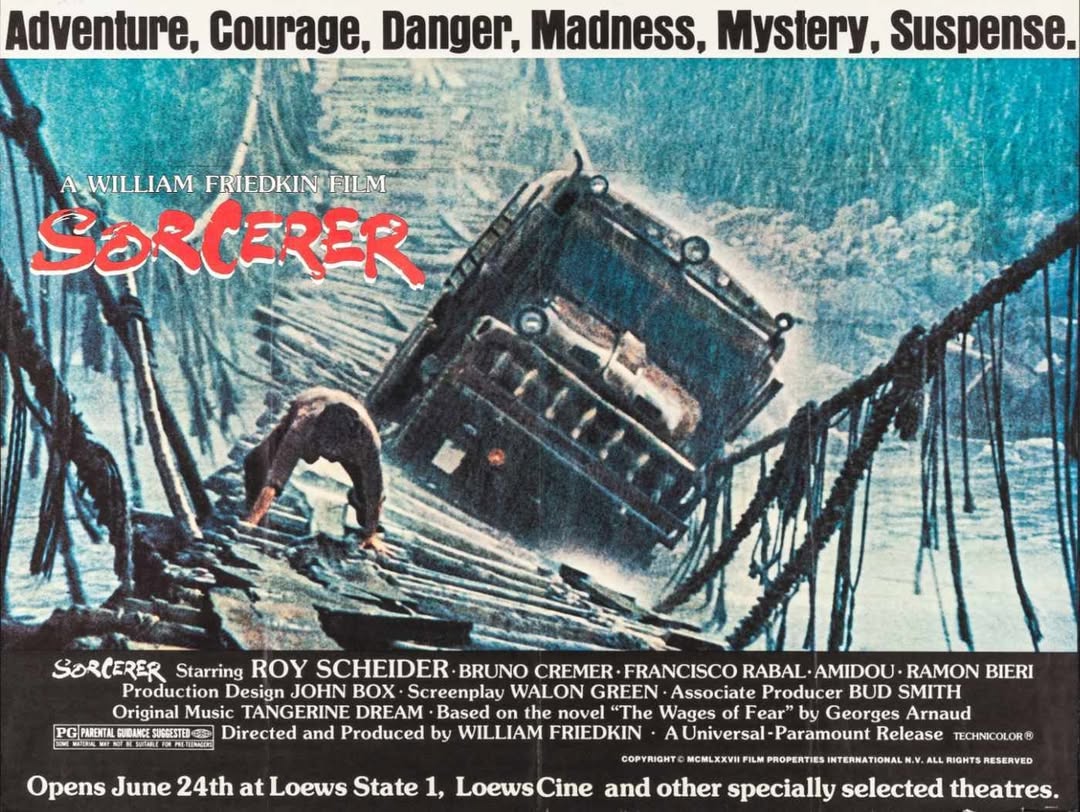 I realized this after watching an overlooked masterpiece by William Friedkin, eponymously named Sorcerer (1977). It's over two hours long and inexplicable as can be, with a diverse set of characters from all over the world thrown together in some destitute, made-up Latin American dictatorship. Different professions, different people, different problems. And with all of that it works, wonderfully.