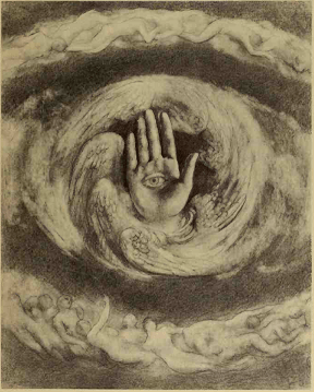“Kahlil and I spent the evening in the studio. A glorious old linen of the Crucifixion filled all the lower wall – with his cerise velvet curtains at each side of it.”
