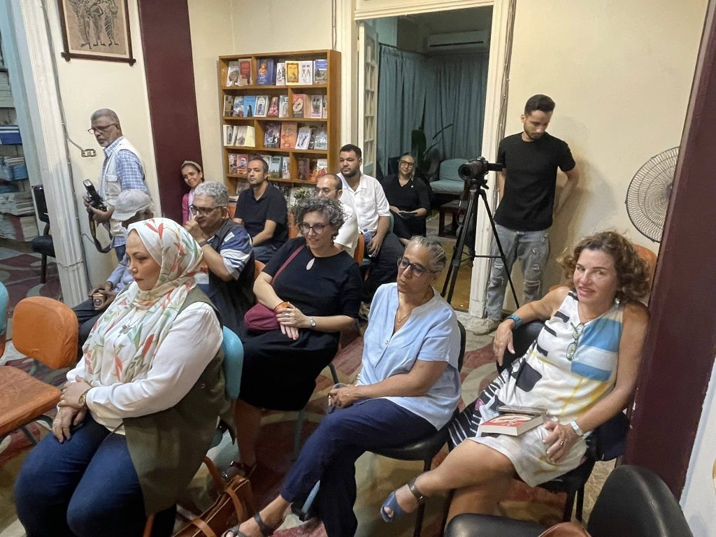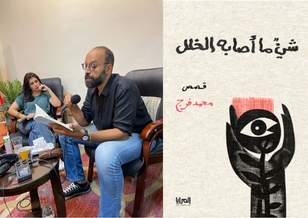 UNHINGED IN EGYPT: Interviewer Mona Abu Al-Nasr and author Muhammad Farag at the event, juxtaposed next to this surreal looking and 'feeling' book.[Photos of the event taken from the bookshop's Facebook page].