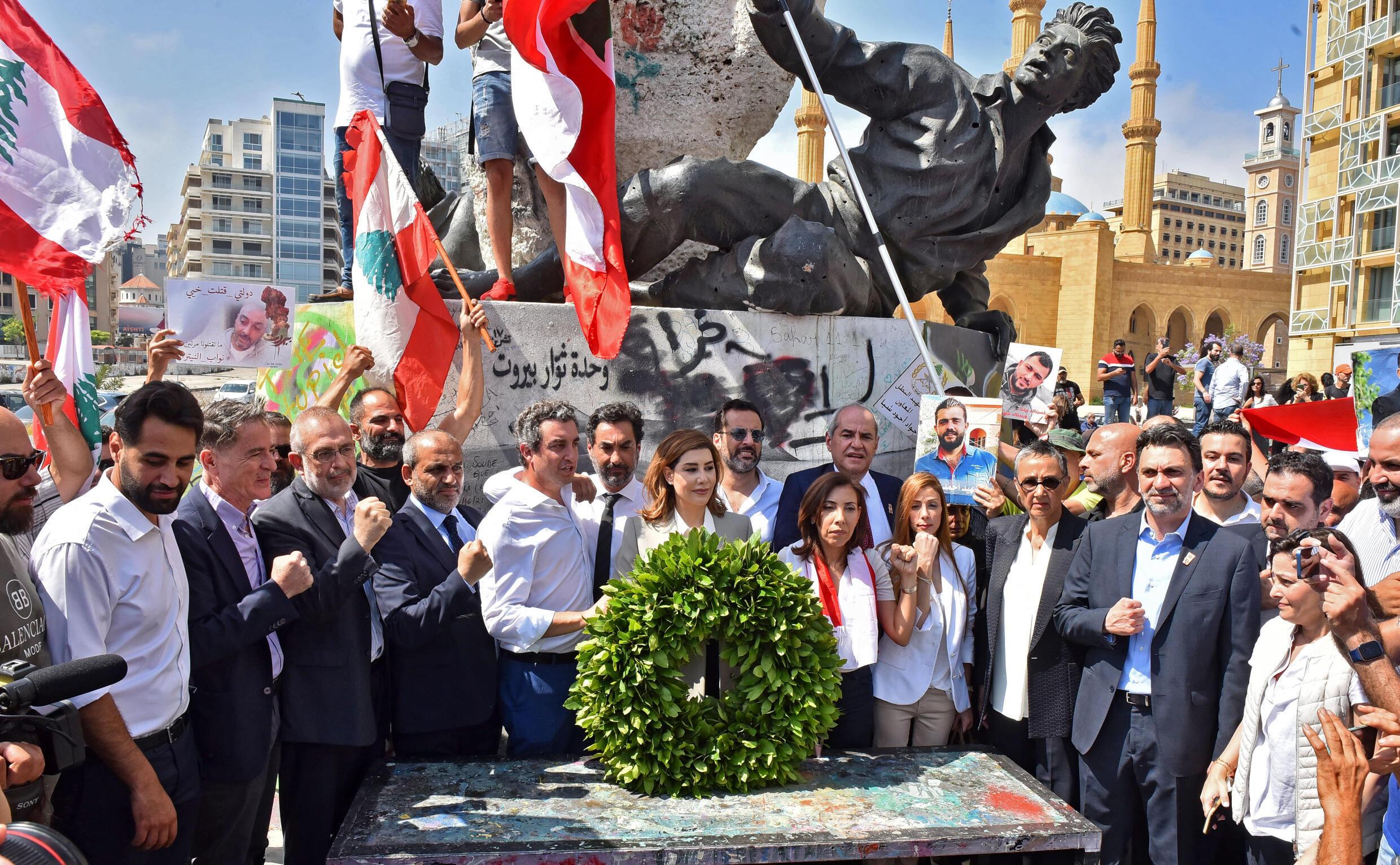 Reformist MPs born out of the 2019 protest movement gathered Tuesday outside Beirut's port and met with families of the port blast victims ahead of the first Parliament session.