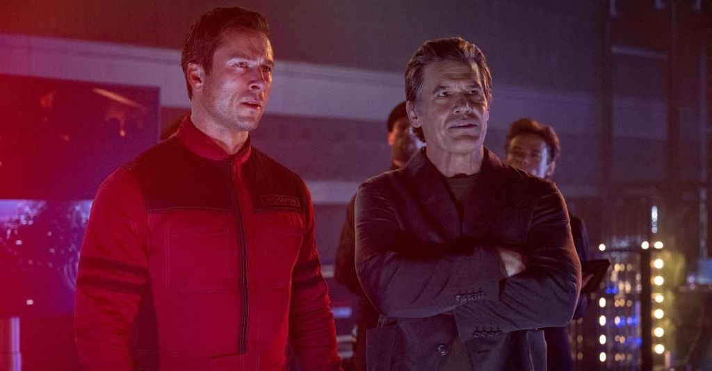 CHOMSKY'S NIGHTMARE: Glen Powell and Josh Brolin sharing an introspective moment about the 'manufacture of consent' in the era where social media and AI have made cable and satellite TV passé.