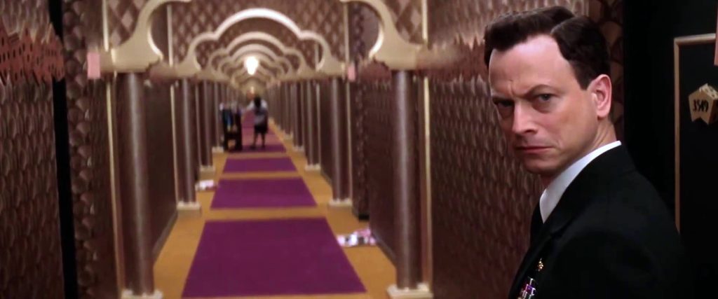 IMPERIAL DECOR: Gary Sinise as unassuming badguy Kevin Dunne, somebody who clearly takes his job too seriously. (Notice the tacky Oriental background in the hotel corridor?)